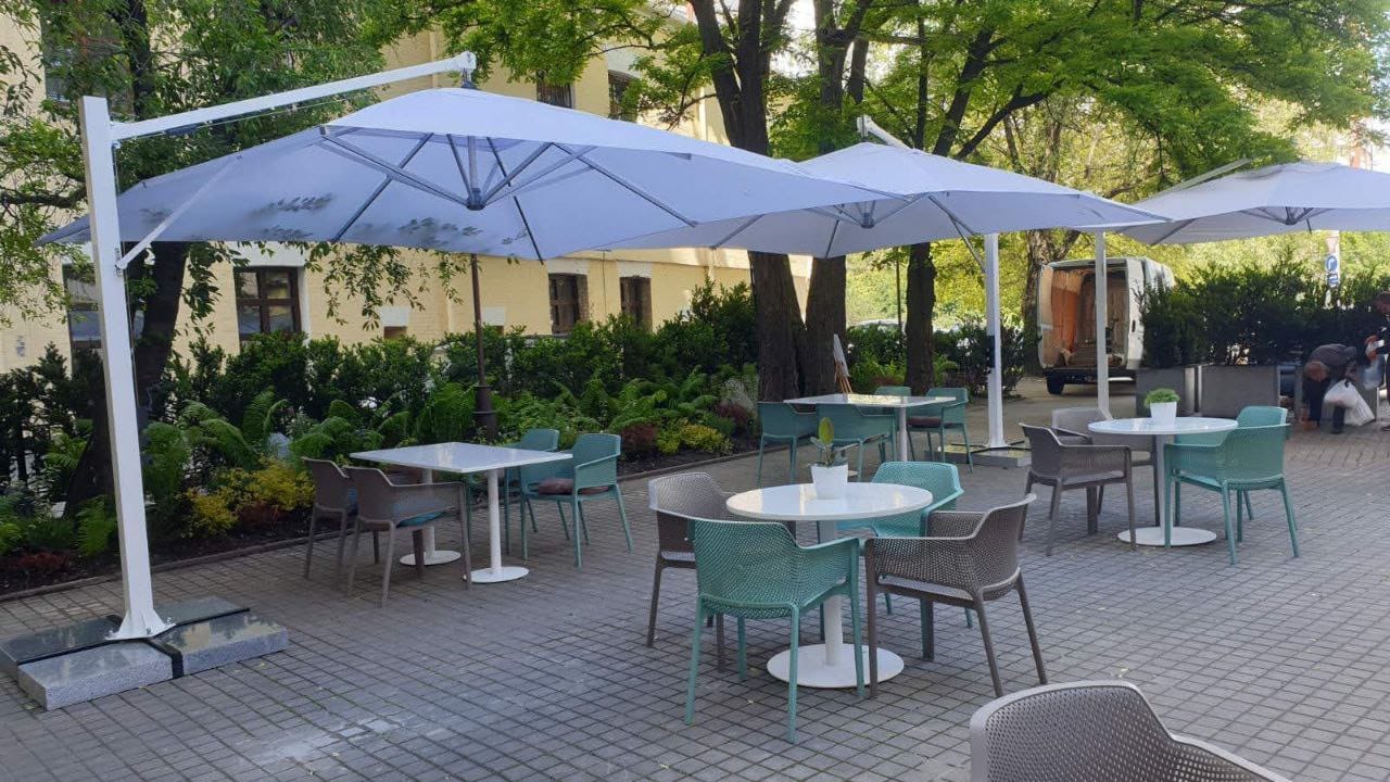 Parasol wspornikowy Palermo 3.5m x 3.5m. Przeznaczony dla kawiarni,terenów zewnętrznych, placów przed domem, hoteli.