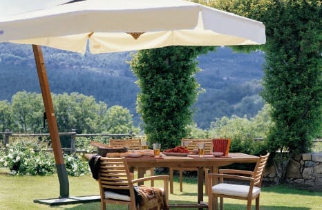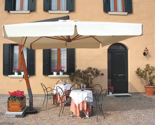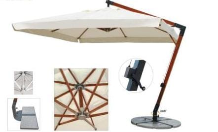 W kategorii „Parasol wspornikowy zewnętrzny” szczególne miejsce zajmują parasole zewnętrzne o zwiększonej powierzchni ochrony przed słońcem i deszczem. Wielkość kopuł takich parasoli ogrodowych pozwala na umieszczenie pod takim parasolem zewnętrznym dużego zestawu mebli z wikliny ogrodowej. W ogrodzie, używając parasola zewnętrznego o takim designie jak parasol ogrodowy, można łatwo wyróżnić miejsce do grillowania. Pomimo dużych rozmiarów tego parasola ogrodowego, podnoszenie i opuszczanie baldachimu nie jest procesem czasochłonnym, nawet dziecko bez problemu sobie z tym poradzi. Za pomocą prostego uchwytu obrotowego mechanizmu podnoszącego można otworzyć lub złożyć kopułę tego dużego parasola ogrodowego.