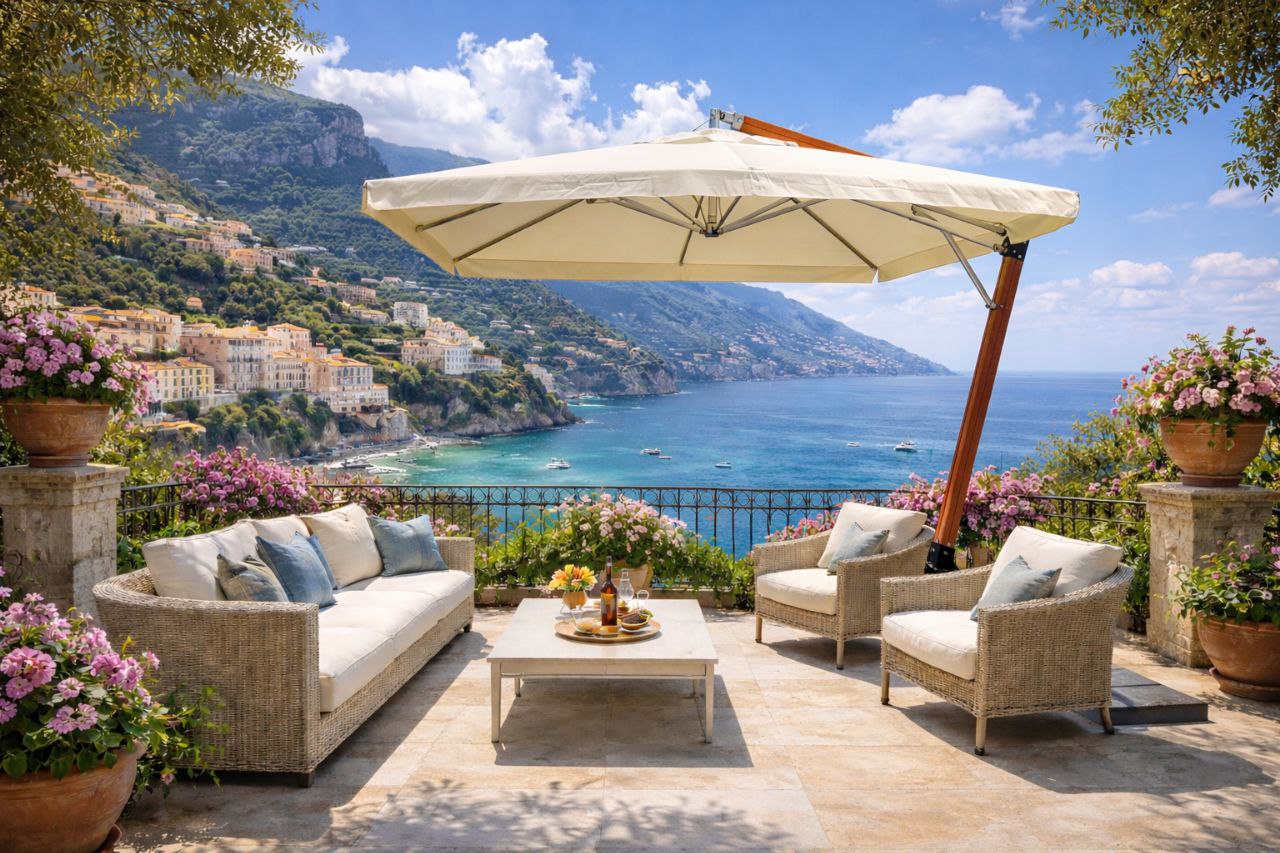 Kolor tkaniny: NATURALNY (odporny na słońce i wodę) Wspornikowy parasol ogrodowy to stylowa konstrukcja wysokiej jakości, chroniąca przed słońcem i deszczem, używana jako parasol do letnich tarasów, ogródków, kawiarni i restauracji lub domków letniskowych, domów prywatnych i willi. Parasol ten można kupić w Polsce, z dostawą, montażem, gwarancją i serwisem w firmie „ParasoleHoReCa”